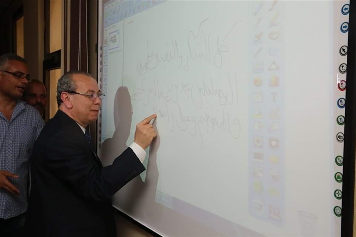 وسجل محافظ كفرالشيخ، برقية شكر للمعلمين والعاملين بالتربية والتعليم وعلى رأسهم الدكتورة بثينة كشك وكيل وزارة التربية والتعليم بكفرالشيخ، وذلك كتابتاً على السبورة الذكية بالمركز التكنولوجى بكفرالشيخ.
