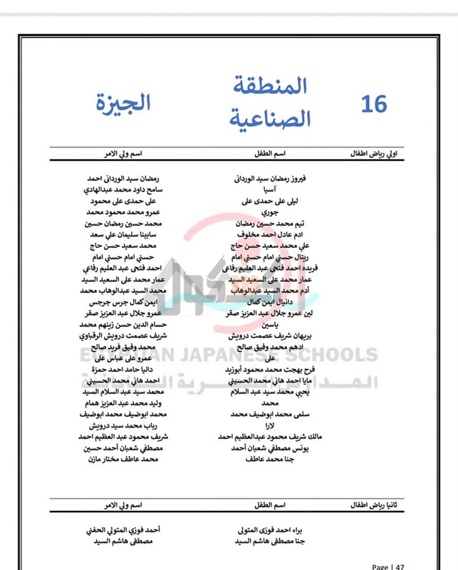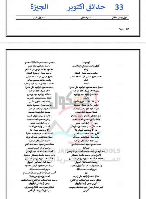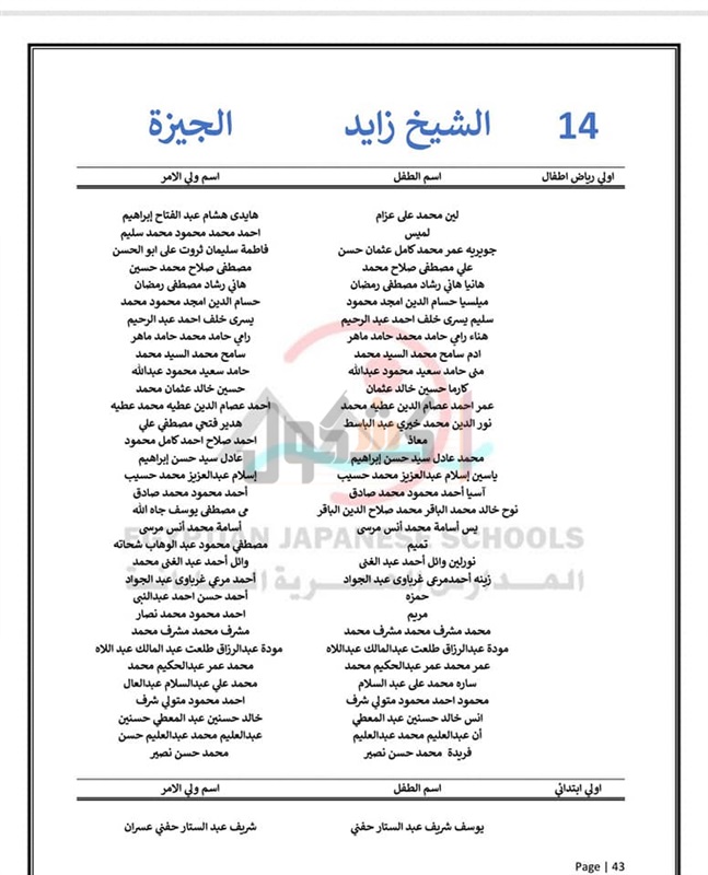 مديرية التربية والتعليم بمحافظة الجيزة نتيجة الطلاب المقبولين في المدارس اليابانية