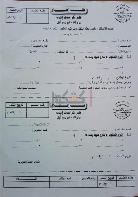 2- يتقدم الطالب بطلب للاطلاع على المادة أو المواد المطلوب الاطلاع عليها لمندوب لجنة النظام والمراقبة المتواجد بالمديريات التعليمية التي تتبع اللجنة.