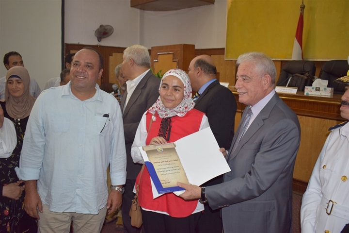 ومن جانبه ألقى وكيل الوزارة كلمة ترحيب باالمحافظ وكل قيادات المحافظة مشيدا باللفتة الكريمة بتكريم أوائل الشهادة الثانوية فور إعلان النتيجة.