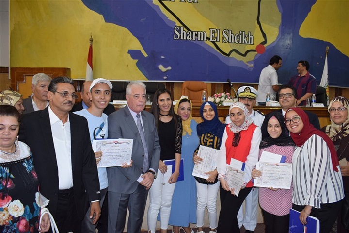 بالصور.. محافظ جنوب سيناء يكرم أوائل الشهادة الثانوية بالمحافظة