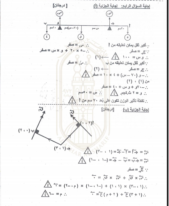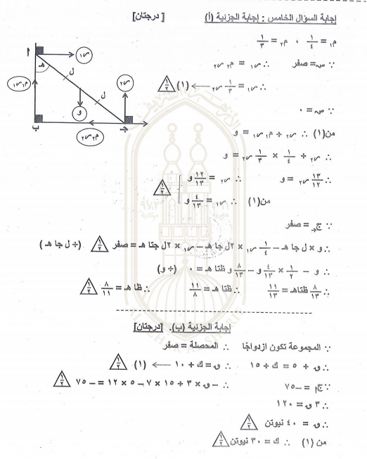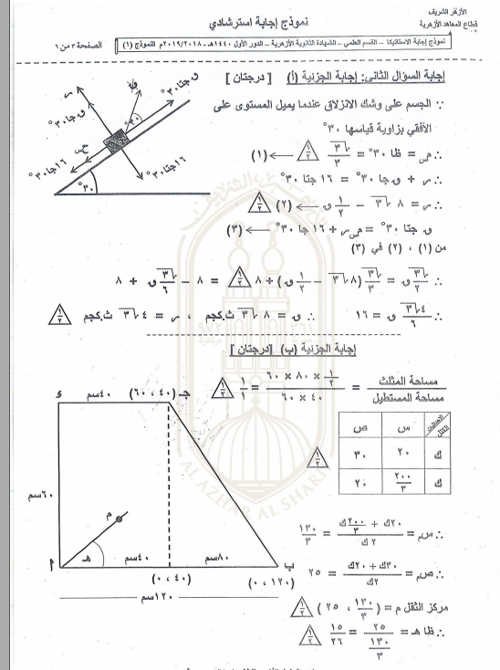ننشر الإجابة النموذجية لامتحان "الإستاتيكا" لطلاب الثانوية الأزهرية 2019