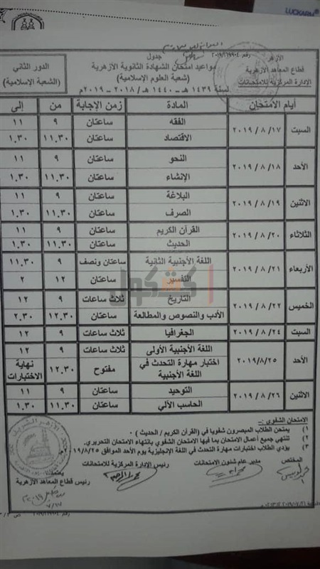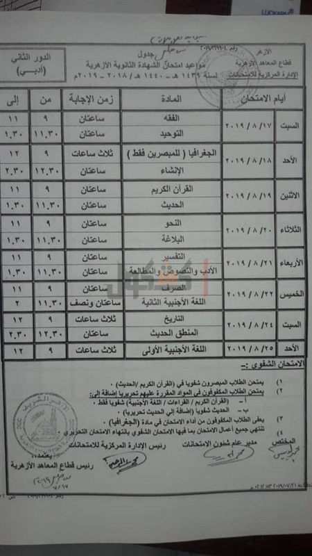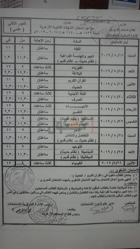 ننشر جداول امتحانات الدور الثاني للثانوية الأزهرية