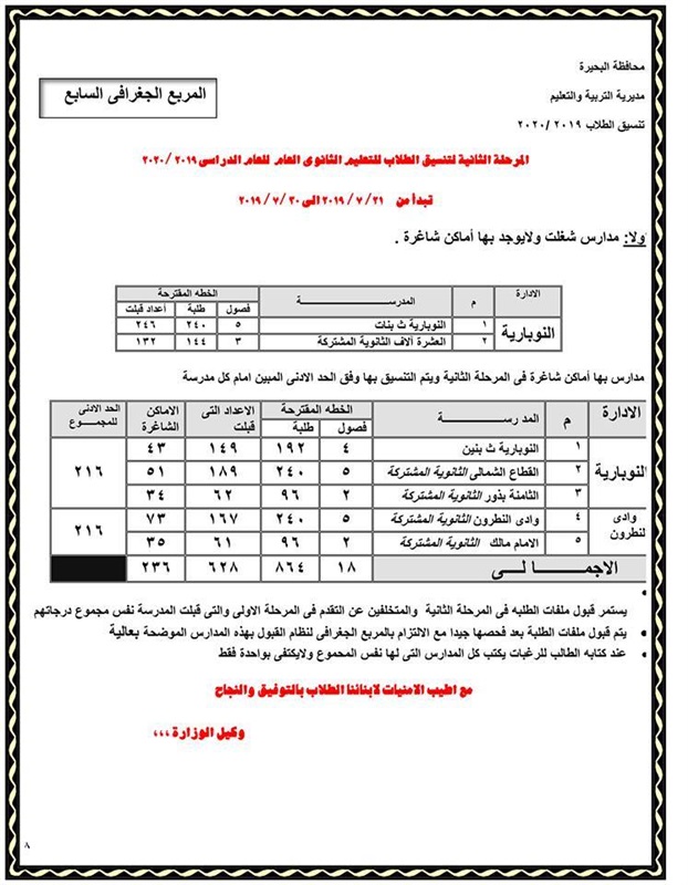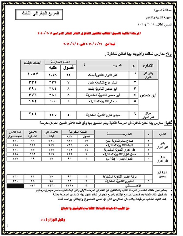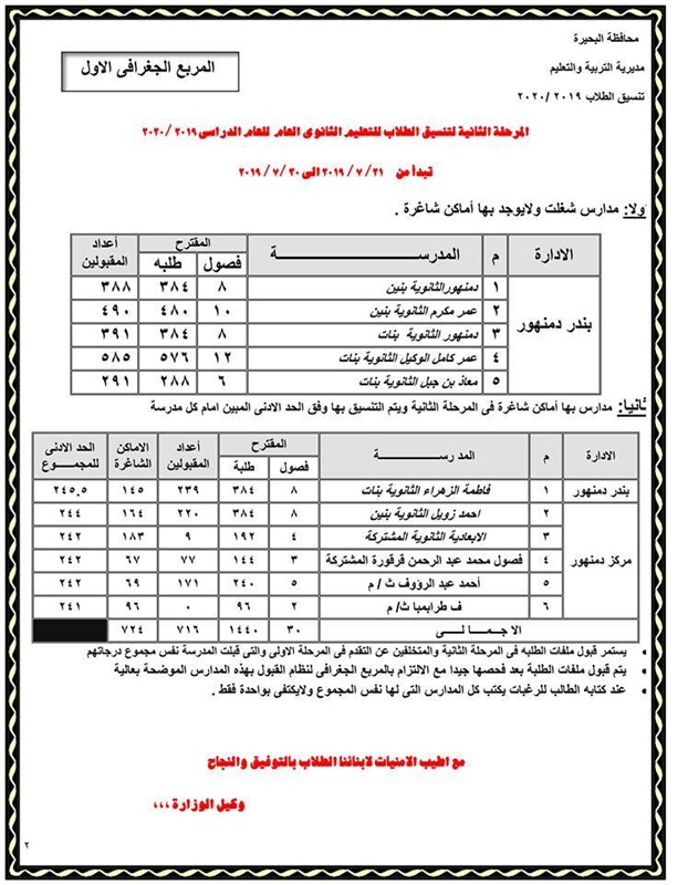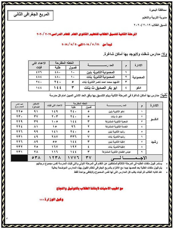 ننشر نتيجة المرحلة الثانية لتنسيق الثانوية العامة بالبحيرة