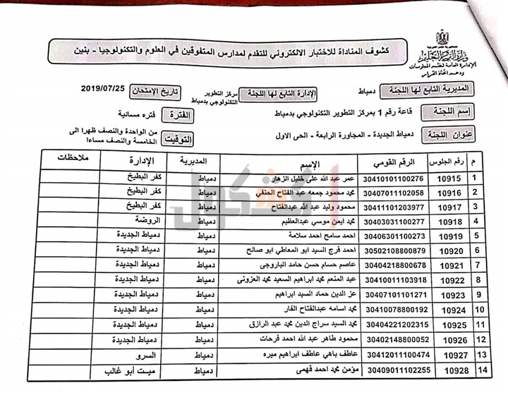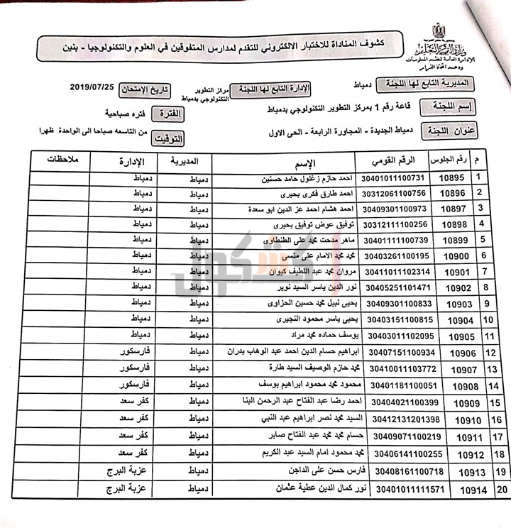 ننشر موعد اختبارات مدارس المتفوقين STEM بدمياط