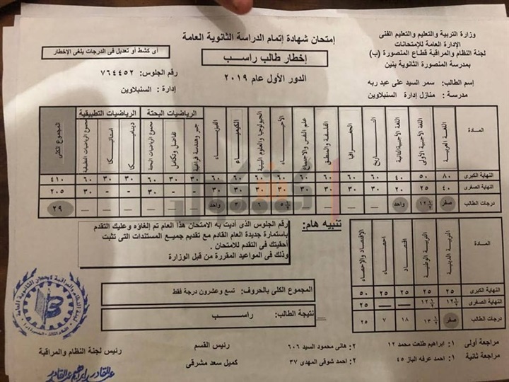 وكان قد تداول نشطاء مواقع التواصل الاجتماعي منشور حول طالبة تدعي سمر السيد علي عبد ربه، بمدرسة السنبلاوين الثانوية بنات، أكدت خلاله أنها طالبة متفوقة وكان الجميع يتوقع لها ألا تقل عن 98% بمجموع الثانوية العامة، ولكنها فوجئت بالنتيجة وحصولها علي 7% أى 29 درجة من 410.
