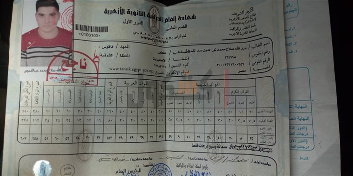 حصل عبدالله صلاح الطالب بالشهادة الثانوية الأزهرية بمعهد فاقوس بمحافظة الشرقية، على 20 درجة إضافية بعد تقديم تظلم في مادة الفيزياء.