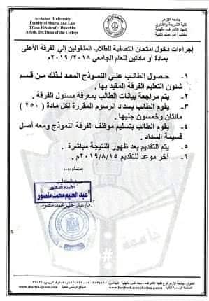 ونص قرار جامعة الأزهر على أن يتقدم الطلاب المنقولين للفرقة التالية بمادة أو اثنين لأداء الامتحانات خلال فترة الأجازة.