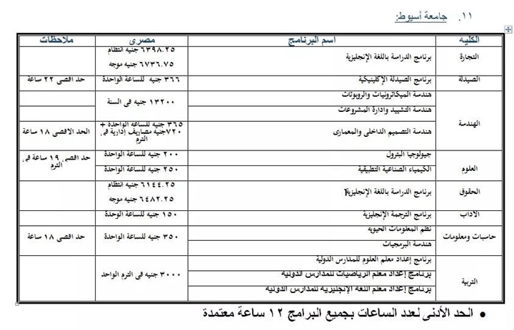 تعرف على برامج الساعات المعتمدة بكليات أسيوط