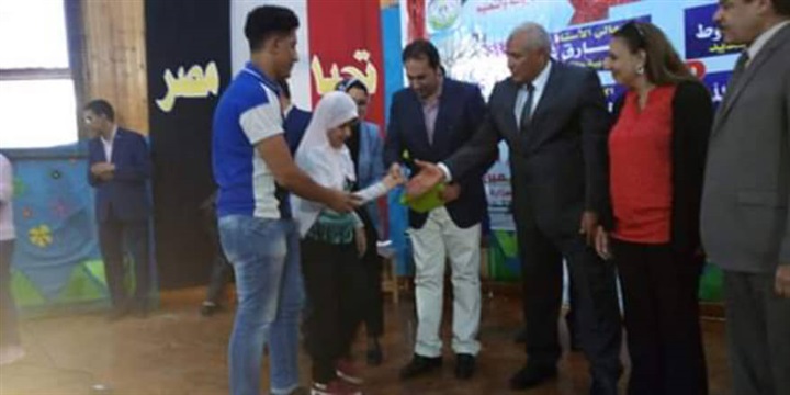 كما تم توزيع شهادات تقدير ومبالغ مالية ودرع المحافظة للطلاب الأوائل بالإضافة إلي توزيع أجهزة تابلت مبرمجة للطلاب المكفوفين بمراحل التعليم المختلفة .