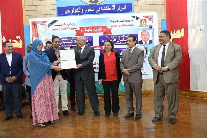 كرم الدكتور محمد عمر نائب وزير التربية والتعليم لشئون المعلمين واللواء محمد الزملوط محافظ الوادي الجديد ، اليوم الأحد ٢٨ من يوليو عام ٢٠١٩ ، عدد من مديرى المدارس المتميزين والذين حصلوا على مراكز متقدمة بعدد من الأنشطة التربوية للعام الدراسي المنقضى وكذا أوائل الشهادات العامة والفنية بمراحل التعليم المختلفة علي مستوي المحافظة ، وذلك في احتفالية كبري بمقر االمركز الاستكشافي للعلوم والتكنولوجيا بالداخلة ،