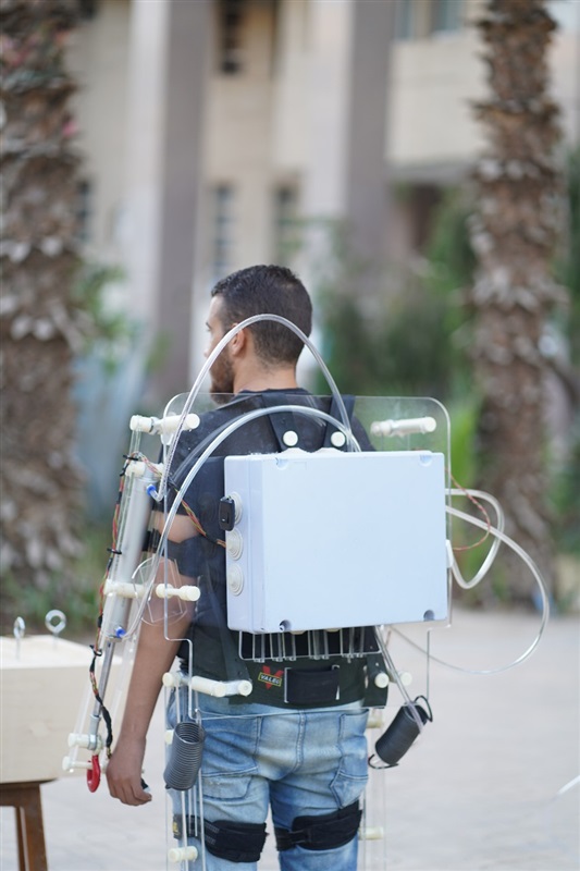 بالصور.. طلاب "هندسة حلوان" يبتكرون بدلة لرفع الأوزان الثقيلة