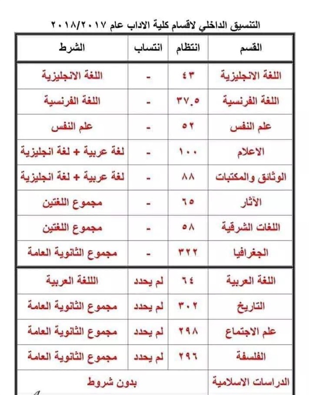 جامعات تعرف على شروط التنسيق الداخلى لآداب أسيوط أحمد كمال الثلاثاء 30/يوليو/2019 - 09:51 م 7/30/2019 9:51:00 PM طباعة أعلنت كلية الآداب جامعة أسيوط عن التنسيق الداخلي لكل قسم بالكلية، حيث جاءت الأقسام كالتالي: facebook twitter whats شارك
