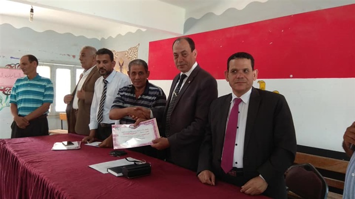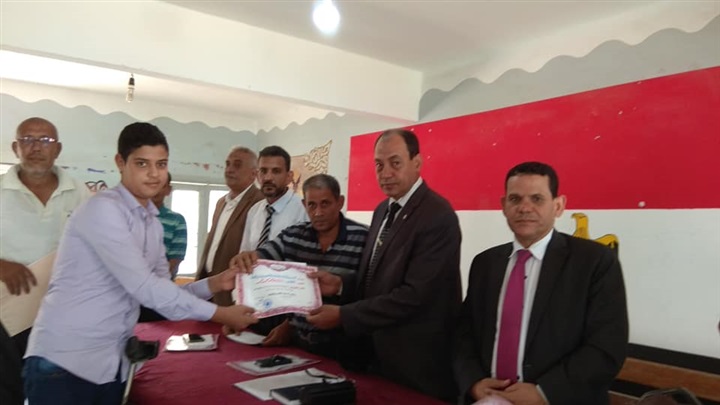 مدير الإدارة بتسليم شهادات التقدير ومبلغ مالى قدره 200 جنيه كهدية من مجلس الأمناء