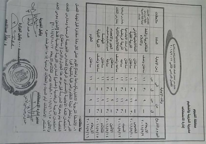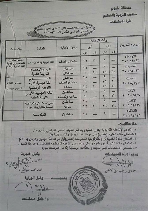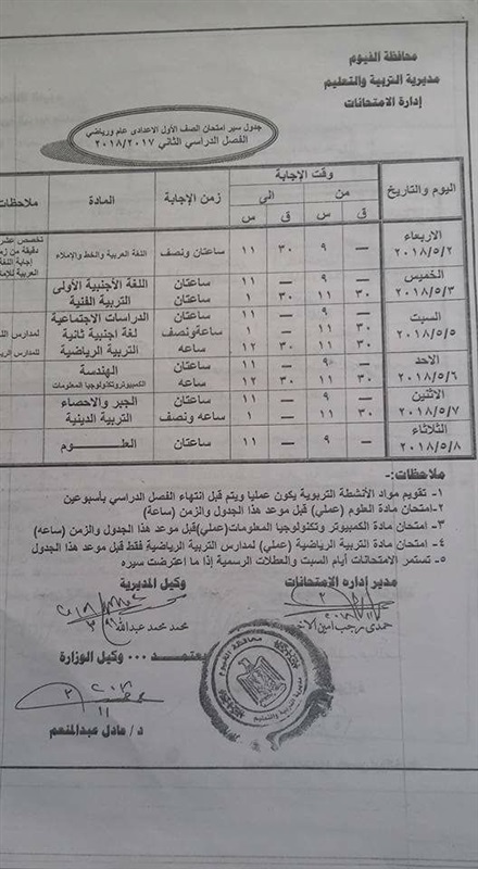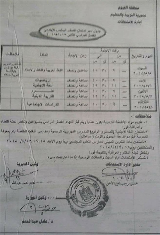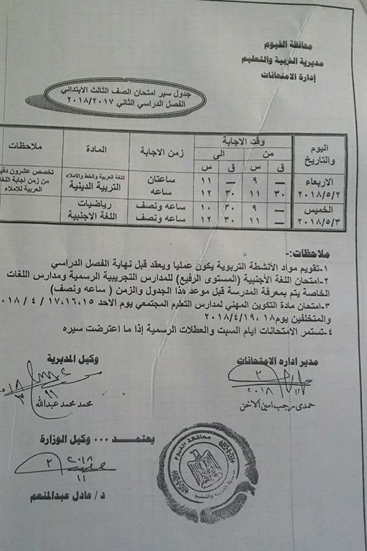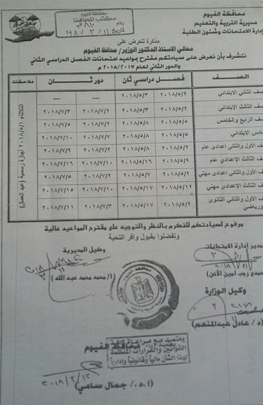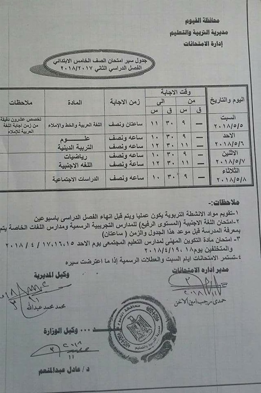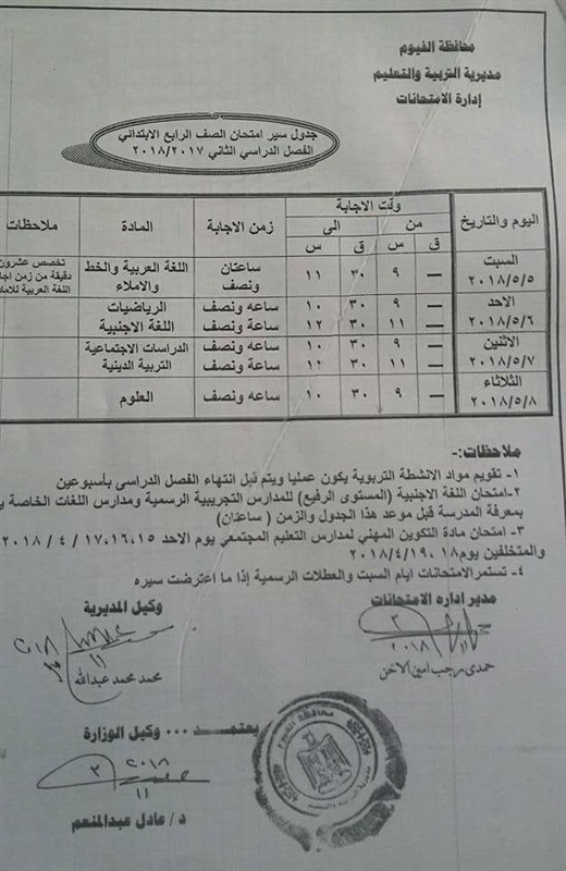 مدارس ننشر جداول امتحانات نهاية العام بالفيوم نورهان عبد الرحمن الثلاثاء 13/مارس/2018 - 08:28 م 3/13/2018 8:28:00 PM طباعة facebook twitter whats شارك
