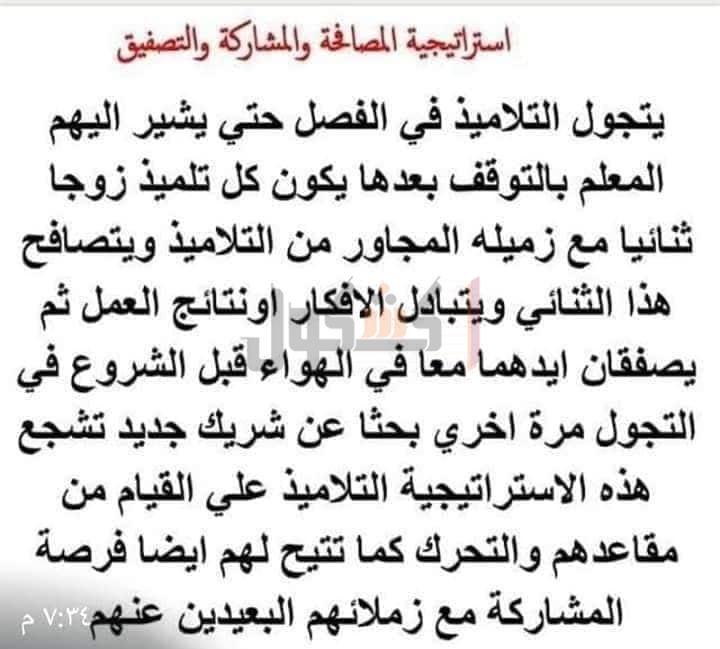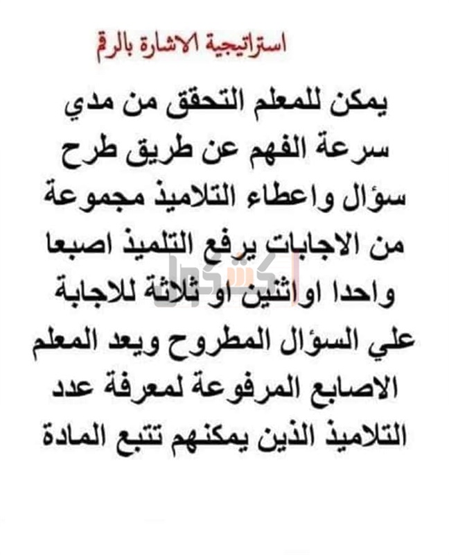 يعتمد نظام التعليم الجديد الذي يتم تطبيقه على 4 صفوف العام الدراسي الجديد وهما رياض الأطفال 1و2 والصفين الأول والثاني الابتدائي علي اعتماد المعلم على عدة استراتيجيات خلال تواجده بالفصل مع التلاميذ.