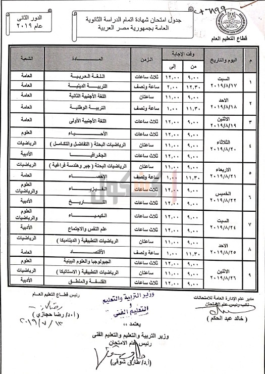 18 أغسطس مادتى اللغة الأجنبية الثانية والتربية الوطنية، والإثنين 19 أغسطس اللغة