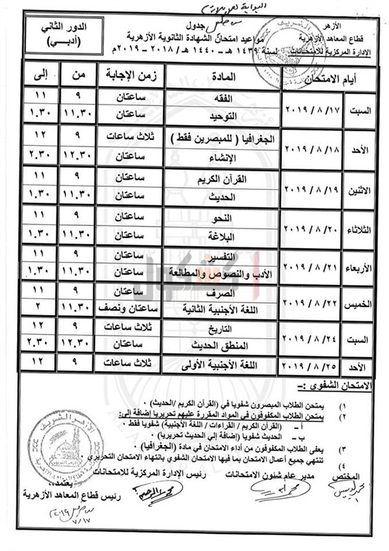 ننشر جداول امتحانات الدور الثاني للثانوية الأزهرية