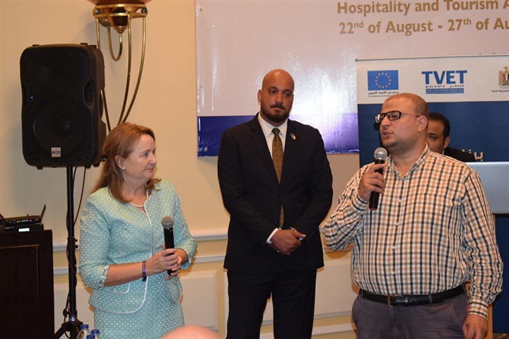 وذلك بحضور محمد حامد عقل وكيل وزارة التربية والتعليم بجنوب سيناء، نائبا عن اللواء أ.ح خالد فودة محافظ جنوب سيناء وشروق زيدان المدير التنفيذي لبرنامج TVET EGYPT والأستاذ الدكتور محمد موسى عمارة رئيس قطاع التعليم الفني والتجهيزات بوزارة التربية والتعليم والتعليم الفني وهبة بكري عضو مجلس إدارة الاتحاد المصري للغرف السياحية ورئيس لجنة التدريب والدكتورة سها بهجت محمد مستشار وزير السياحة للتدريب ومنال ماهر عضو لجنة حقوق الإنسان بمجلس النواب، إضافة لعدد من مديري المدارس الفندقية ومديري المعاهد الفنية وممثلي وزارة التربية والتعليم وممثلي وزارة التعليم العالي وممثلي وزارة السياحة وممثلي الاتحاد المصري للغرف السياحية وممثلي برنامج دعم وتطوير التعليم الفني والتدريب المهني.