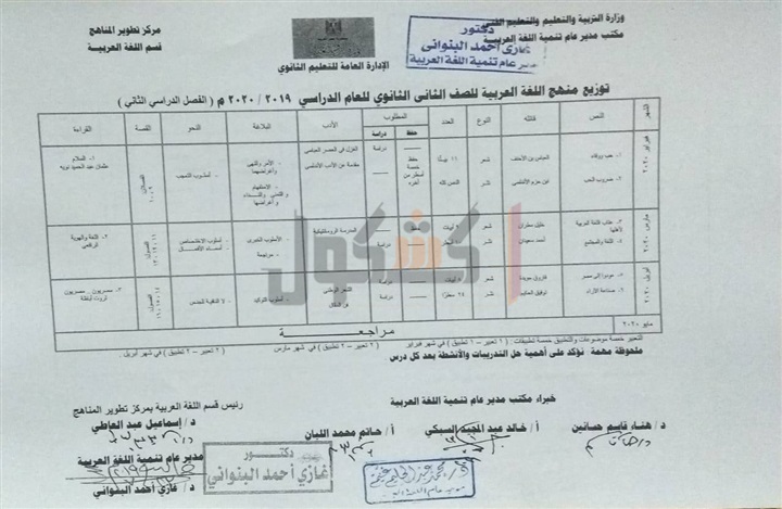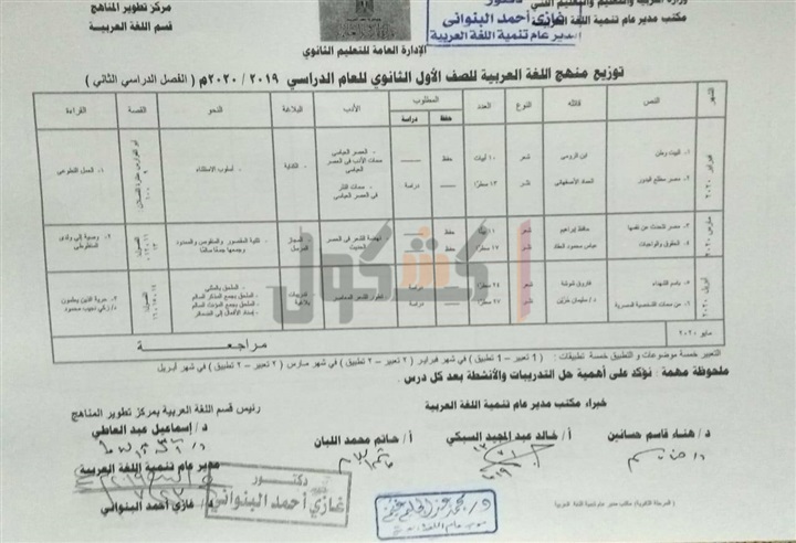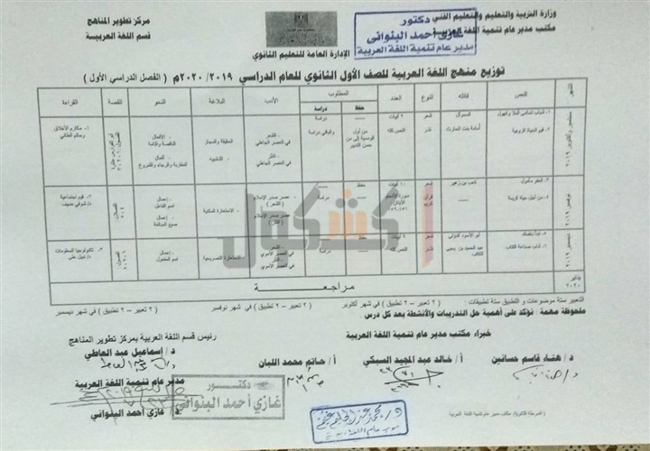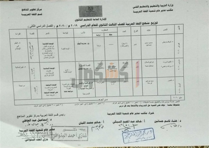ننشر توزيع منهج اللغة العربية لصفوف "الثانوية العامة"