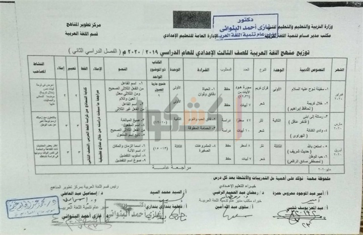 بالصور.. توزيع منهج اللغة العربية للمرحلة الإعدادية العام الدراسي الجديد