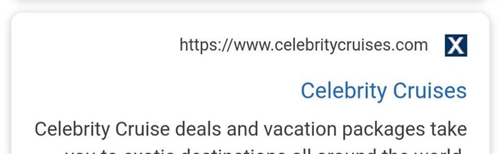 وتابع مدير مكتب التنسيق بجامعة الأزهر، " حينما يتم فتح صفحة البحث المخصصة لجوجل تظهر بعض المواقع التي يتم البحث عنها بصورة كبيرة، ومن ثم عند فتح صفحة جديدة، ظهرات الصفحة الخاصة بموقع " celebritycruises”".