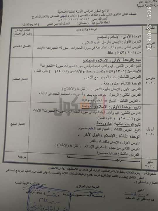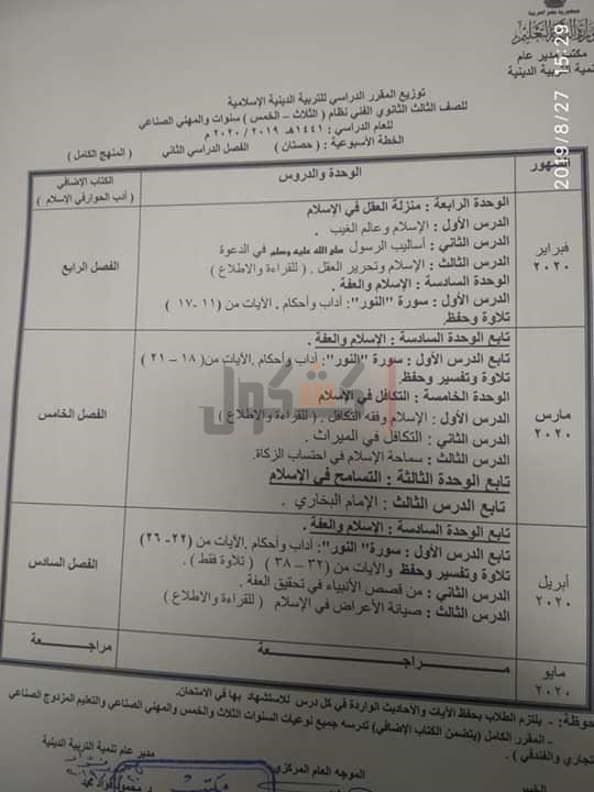 ننشر منهج التربية الدينية للتعليم الفني بالعام الدراسي الجديد
