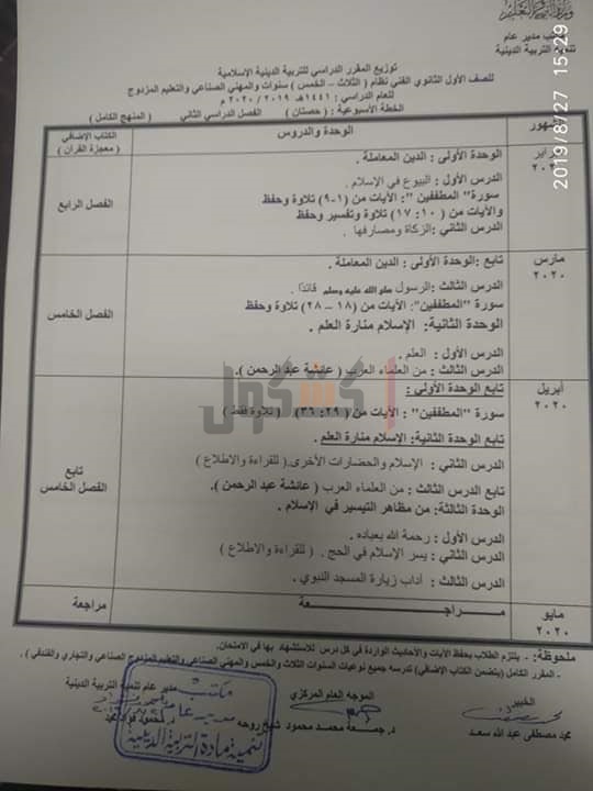 ننشر توزيع المقرر الدراسي للتربية الدينية لنظام التعليم الفني بنظاميه الثلاث سنوات والخمس سنوات، والمهني الصناعي والتعليم المزدوج للعام الدراسي 2019/2020م.