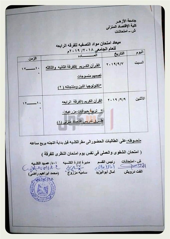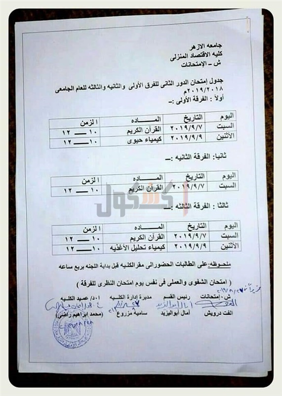 ننشر جداول امتحانات التصفية والـ"سمر كورس" لطالبات اقتصاد منزلي