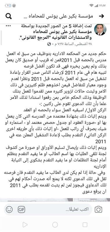 في التعيين، بأنها قضية رفعها محامي ركب رقم تليفونه للتواصل.
