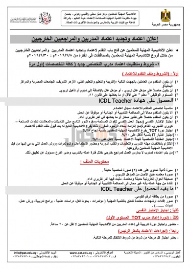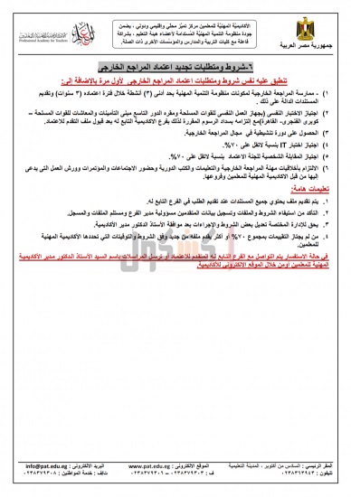 المهنية للمعلمين عن فتح باب التقدم لاعتماد المدربين والمراجعيين الخارجيين من خلال