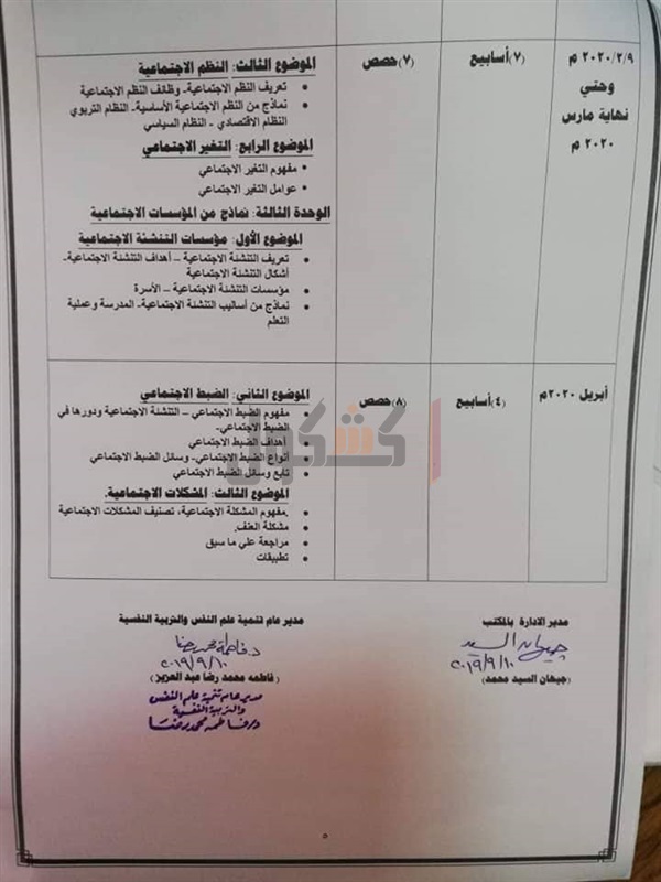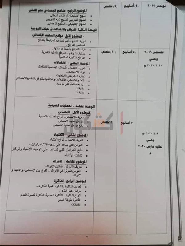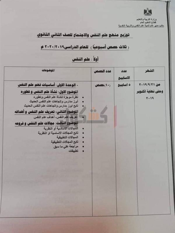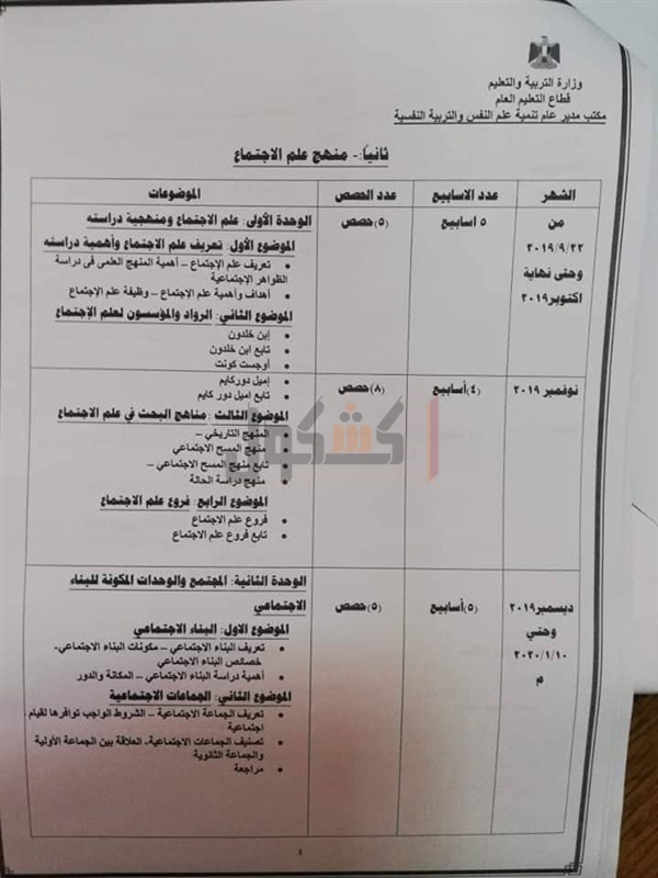 التربية والتعليم توزيع منهج علم النفس والاجتماع للصف الثاني الثانوي للعام الدراسي