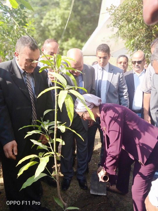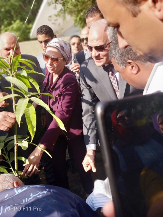 شهدت الزيارة قيام وزيرة البيئة بزراعة شجرة في حديقة المدرسة .