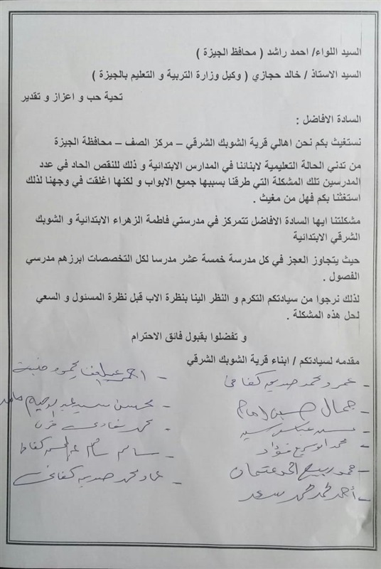 بسبب عجز المعلمين.. أهالى قرية الشوبك بالصف يستغيثون بـ«محافظ الجيزة»