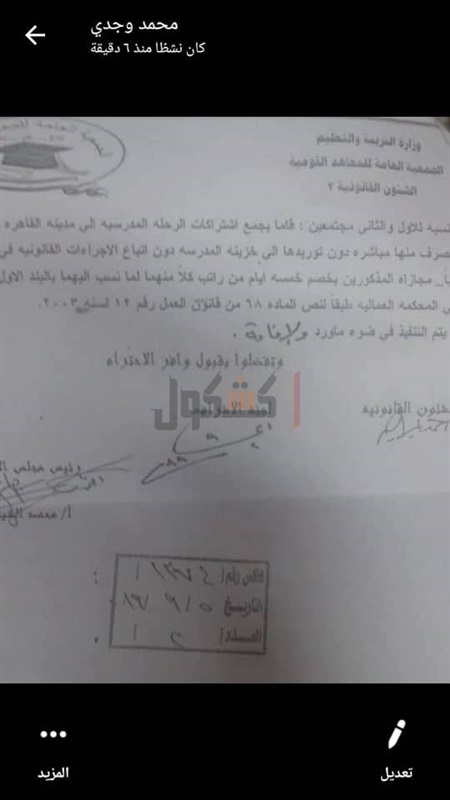 "السيدة مديرة المدرسة لديها سجل مشرف من الجزاءات وبانتظار محكمة عمالية