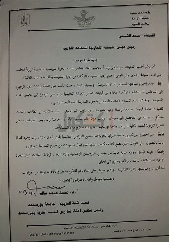 المتخصصة، ووكيل وزارة التربية والتعليم ببورسعيد، ورئيس مجلس إدارة المدرسة، والجميع