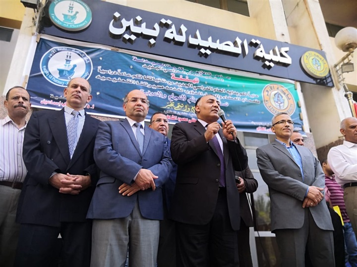 استقبل اليوم الدكتور لطفي دياب، عميد كلية الصيدلة بنين بالقاهرة، والدكتور عبد الناصر المغازى وكيل الكلية للدراسات العليا والبحوث، والدكتور مصطفى الشافعى وكيل الكلية لشئون التعليم والطلاب، اضافة الى ورؤساء الأقسام العلمية والسادة أعضاء هيئة التدريس بالكلية الطلاب الجدد والقدامى وتم عزف السلام الوطني وتم تحية العلم وردد جموع الحاضرين تحية العلم.