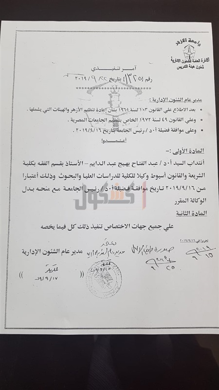 "عبدالدايم" وكيلاً للدراسات العليا بـ"شريعة أزهر أسيوط"