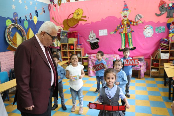 كما قام وكيل الوزارة بمتابعة شرح معلمات رياض الاطفال والصف الاول الاول الابتدائى للتلاميذ حيث تفقد قاعات kg1 بواقع 2 قاعة بالمدرسة وقاعات kg2 بواقع 4 قاعات حيث ادى الاطفال مجموعة من الفقرات والتى عكست مستوى التدريب والاداء المميز لهم والجهود المبذولة بالقاعات.