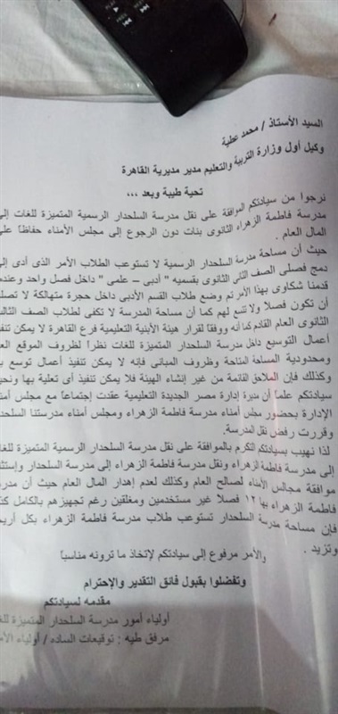تقدم عدد من أولياء أمور طلاب مدرسة السلحدار الرسمية المتميزة للغات التابعة لإدارة مصر الجديدة، بشكوى للدكتور طارق شوقي وزير التربية والتعليم ومحمد عطية وكيل أول وزارة التربية والتعليم مدير مديرية التربية والتعليم بالقاهرة ضد الدكتورة هدى فوزي مدير عام إدارة مصر الجديدة التعليمية بتهمة بإهدار المال العام المتمثل في رفض نقل طلاب مدرسة السلحدار الرسمية المتميزة للغات التي لا يوجد بها عدد فصول كاف لاستيعاب الطلاب إلى مدرسة فاطمة الزهراء الثانوية الملاصقة لها والتي يوجد بها 12 فصلا غير مستخدم كما قرروا التقدم ببلاغات للجهات الرقابية وجهات التحقيق " الرقابة الإدارية والنيابة العامة و النيابة الإدارية " بسبب تعنت الإدارة علاوة أن كثافة الطلاب بها 13 طالبا رغم موافقة هيئة الأبنية التعليمية على النقل باعتبار تبديل المدرستين ضرورة ملحة لإنقاذ مستقبل الطلاب خاصة أن المدرستين تتبعان نفس الإدارة وأن فكرة النقل كانت من مدير سابق للإدارة وبعد الحصول على الموافقات رفضت النقل بحجة عدم موافقة مجلس أمناء مدرسة فاطمة الزهراء.
