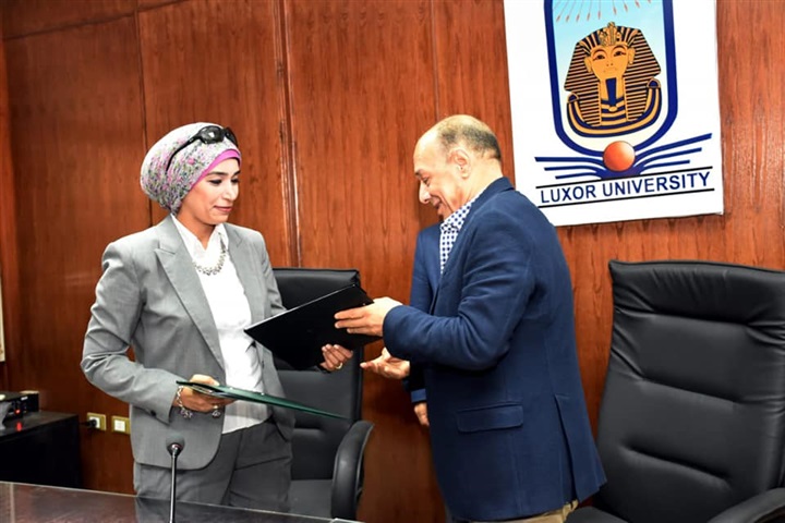 خلال توقيع البروتوكول أكد الدكتور بدوى شحات، رئيس جامعة الأقصر، أن الجامعة تعمل