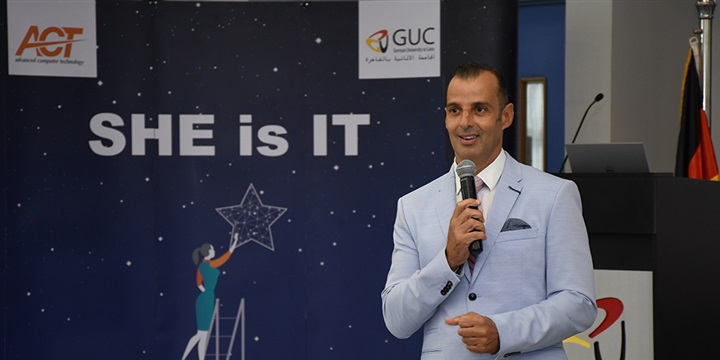 شهد حرم الجامعة الألمانية بالقاهرة إنطلاق فاعليات أعمال ورشة عمل “ هي تكنولوجيا المعلومات " She is IT " التي استهدفت تسليط الضوء على الفجوة التي تعاني منها السيدات اللاتي أتممن دراستهن بمجال تكنولوجيا المعلومات والاتصالات وعدم التحاق العديد منهن بالوظائف التى تتناسب مع مجال تخصصهن ، ومناشدة مسؤلى الهيئات والشركات اتاحة الفرصة لهن للعمل بتلك المجالات و تقلد المناصب القيادية ، حيث انعقدت الورشة بالتعاون مع شركة أكت العاملة في مجال تكنولوجيا المعلومات ACT ،و الهيئة الألمانية للتبادل العلمي DAAD، و الجمعية الألمانية للتعاون الدولي GIZ ، و جامعة دويسبورج-إيسن .