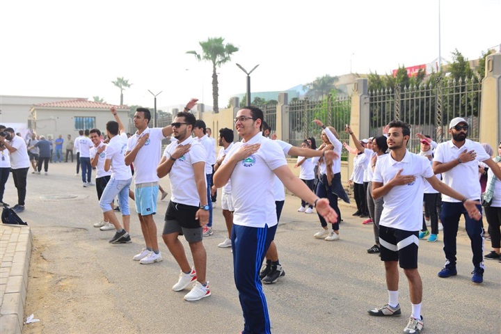 بشوارع مدينة 6 أكتوبر وسط مشاركة كبيرة من طﻻب 13 كلية بالجامعة وأعضاء هيئة