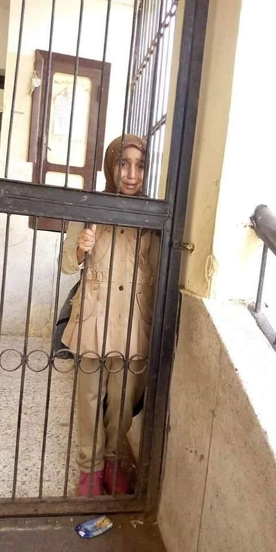 وتابع عصام ولي الأمر: "عندما وجدتها تأخرت بشكل كبير ذهبت إلى المدرسة لأبحث عنها، فلم أجدها مما اضطرني أن أقوم بالقفز من فوق سور المدرسة، فوجدتها منهارة من البكاء بصوت عالي جدا فتوجهت مسرعا لأعلى فوجدت الباب مغلق عليها ولا تستطيع النزول كما يظهر في الصورة".