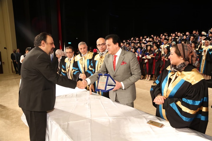الحفل قام الدكتور خالد عبدالغفار بتكريم الخريجين وتقديم شهادات ودروع التفوق