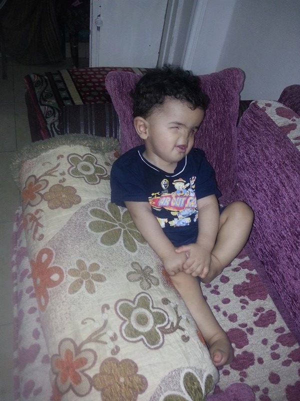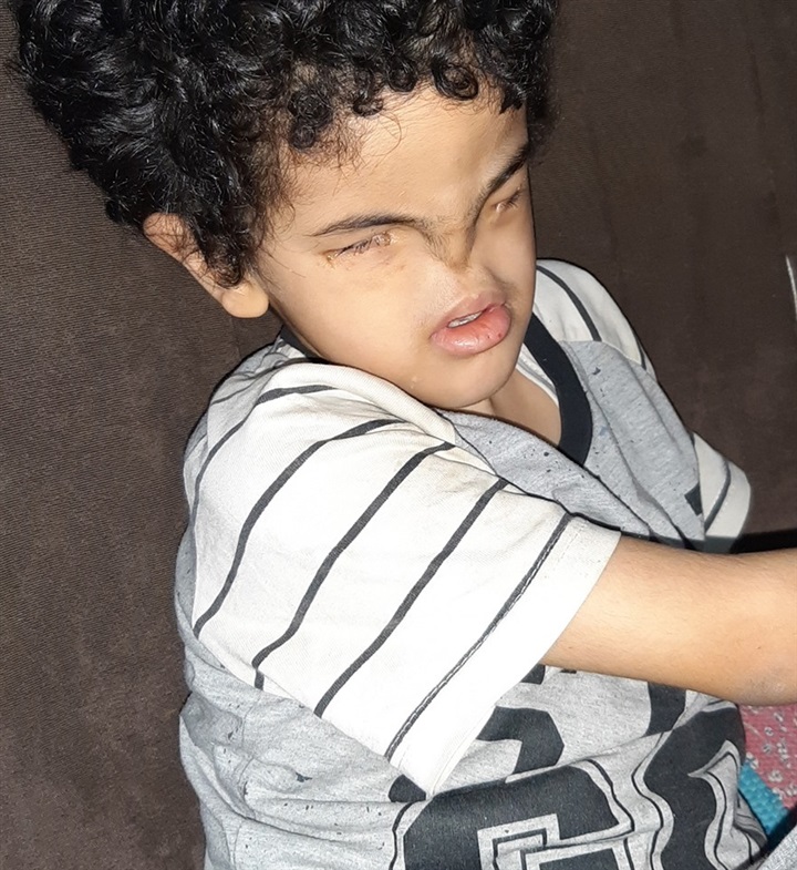 وتواصل: "ابني يعاني من حالة صحية نادرة، لأنه ولد دون أنف وعين