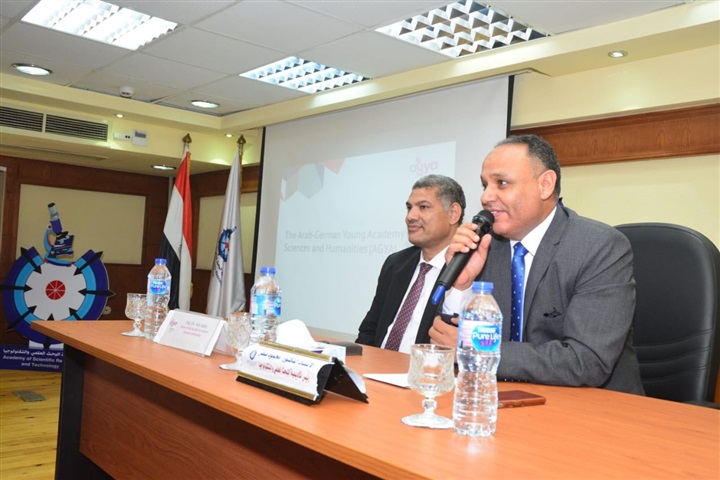 نظمت أكاديمية البحث العلمى والتكنولوجيا بالتعاون مع الأكاديمية العربية الألمانية لشباب العلماء في العلوم والإنسانيات، اليوم، ورشة تدريبية بعنوان "الوضع الحالي والمستقبلي لتطور مجالي الطاقة والمياه" ، وتستمر الورشة حتى يوم 7 نوفمبر 2019، وتأتى فى إطار إتفاقية التعاون المبرمة بين الأكاديمية العربية الألمانية لشباب العلماء وأكاديمية البحث العلمى والتكنولوجيا لدعم التعاون المصرى الألمانى فى مجال العلوم والتكنولوجيا. وسيتم عقد عدة جلسات لمناقشة عدد من الموضوعات ويحاضر فى ورشة العمل عدد من أعضاء الأكاديمية من العلماء المتميزين العرب والألمان، بالإضافة إلي مجموعة من الخبراء الدوليين رفيعى المستوى من دول: أمريكا، وفنلندا، والسويد، واليابان، وبلجيكا، والهند.