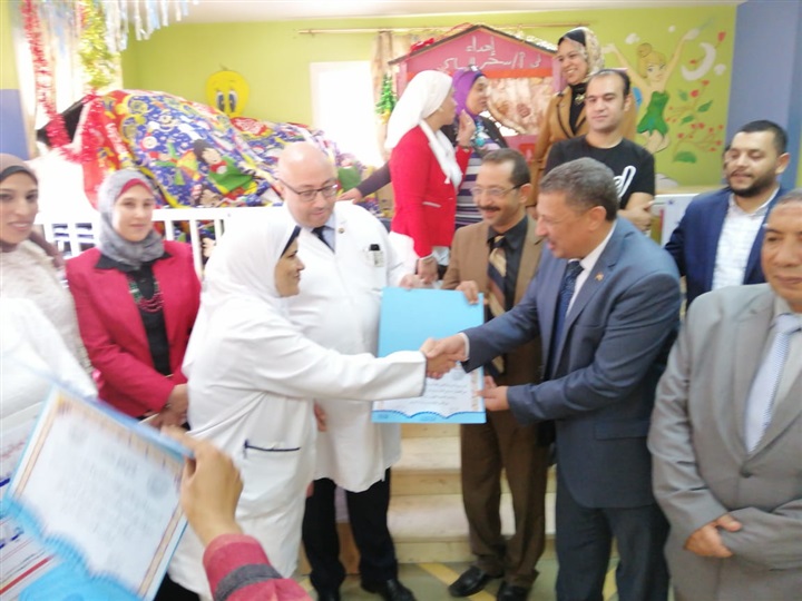 متمنيًـا الشفاء العاجل للمصابين والمرضى، وقام بتكريم الدكتور أيمن كامل مدير