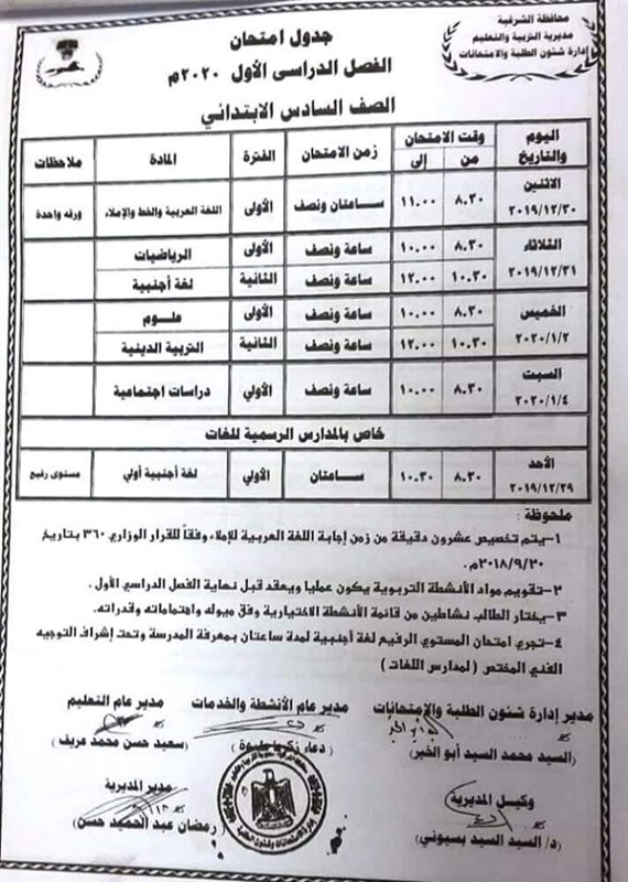 وتساءل أولياء الأمور بالشرقية قائلين كيف يكون بداية الامتحان 30 ديسمبر 2019 بينما الخريطة الزمنية أكدت أن بدء امتحانات نهاية الفصل الدراسي الأول لصفوف النقل والشهادة الإعدادية السبت11 يناير 2020؟
