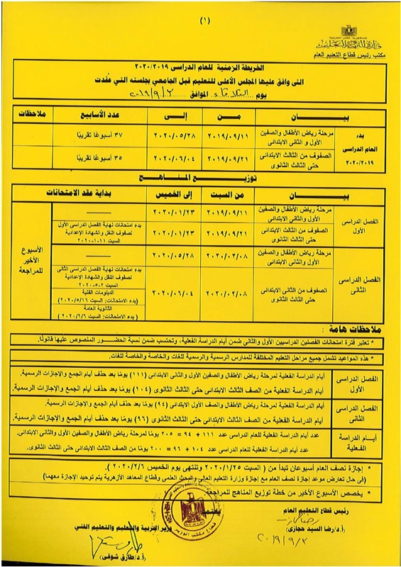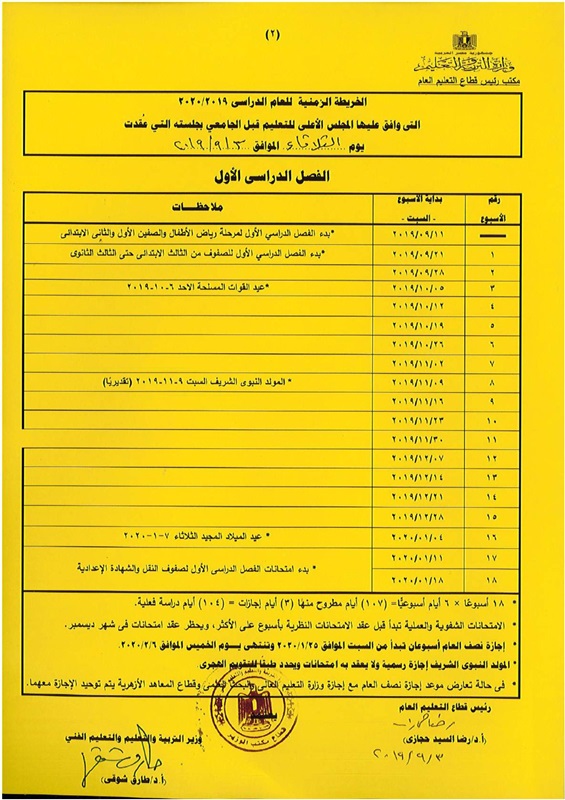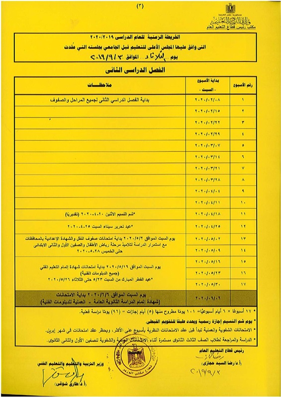 يذكر أن الخريطة الزمنية للعام الدراسي 2019/2020 حددت بداية عقد امتحانات الفصل الدراسي الأول للصفوف النقل والشهادة الإعدادية السبت 11 يناير 2020، كما أنها أكدت أن الأسبوع الأخير للمراجعة.